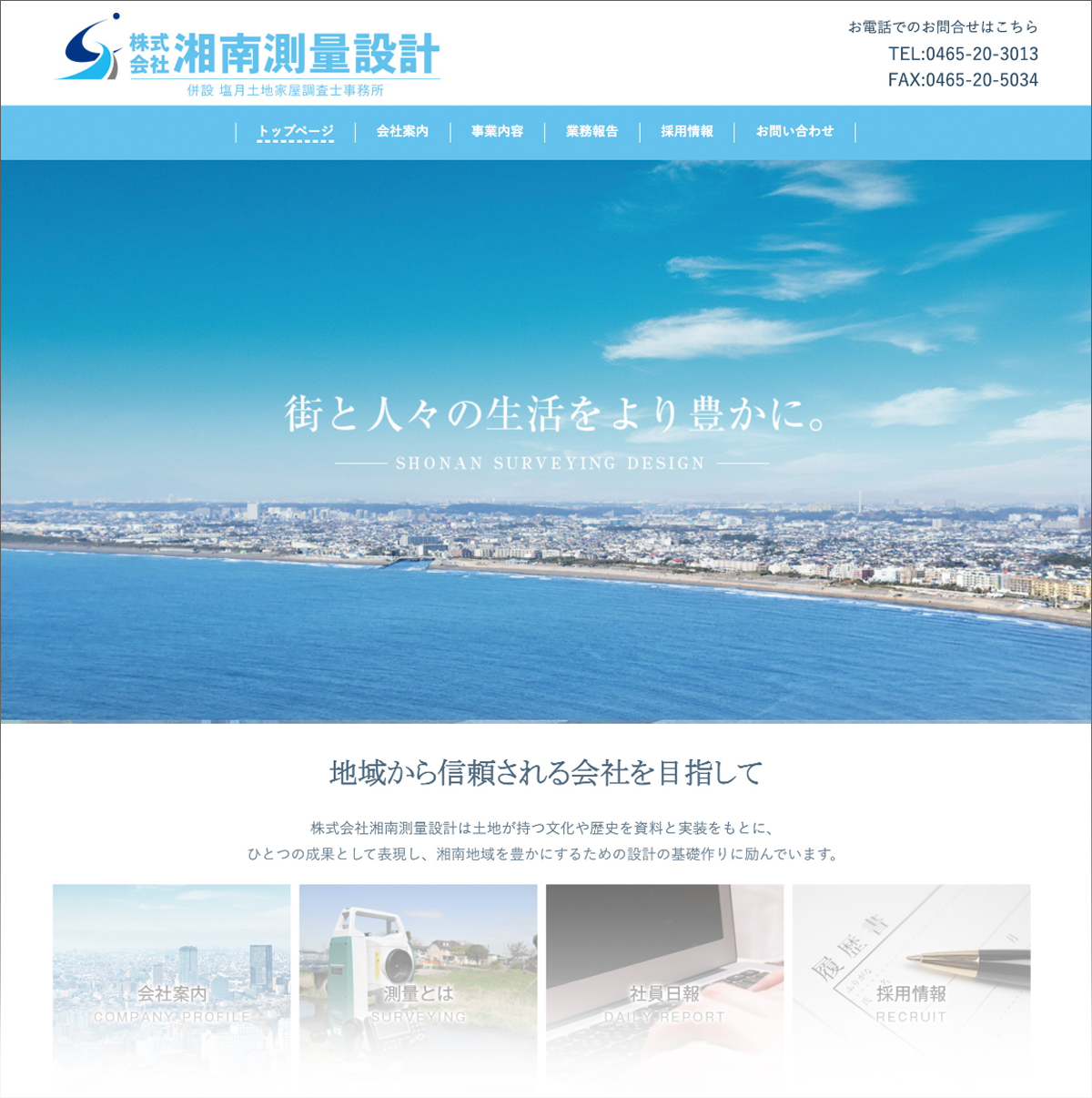 代表あいさつ、事業内容、沿革、実績がきちんと整理され、