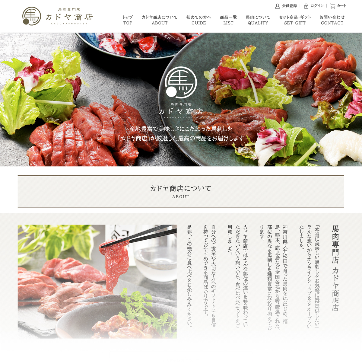 代表あいさつ、事業内容、沿革、実績がきちんと整理され、